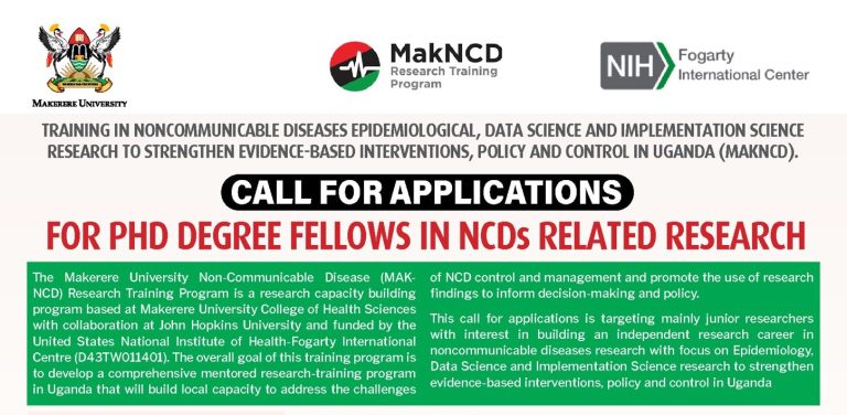 Applications are open for the Makerere University MAK-NCD Research Training Program πΊπ¬ PhD & Masters fellowships in NCD research, Epidemiology, Data Science & Implementation Science. Build research and leadership skills to tackle NCDs. Deadline: 23 Feb 2025. See attached adverts.
