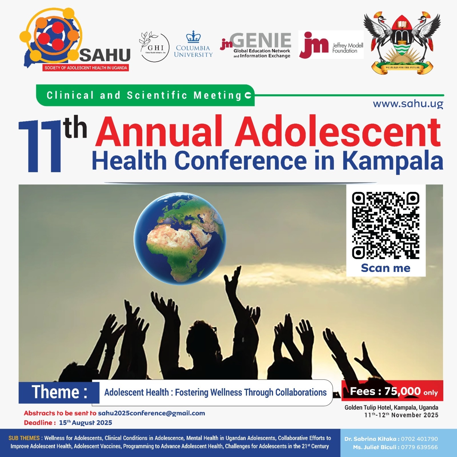 The Society of Adolescent Health in Uganda (SAHU), in partnership with Columbia University, GENIE (Global Education Network and Information Exchange), and the Jeffrey Modell Foundation, invites you to the 11th Annual Adolescent Health Conference in Kampala.