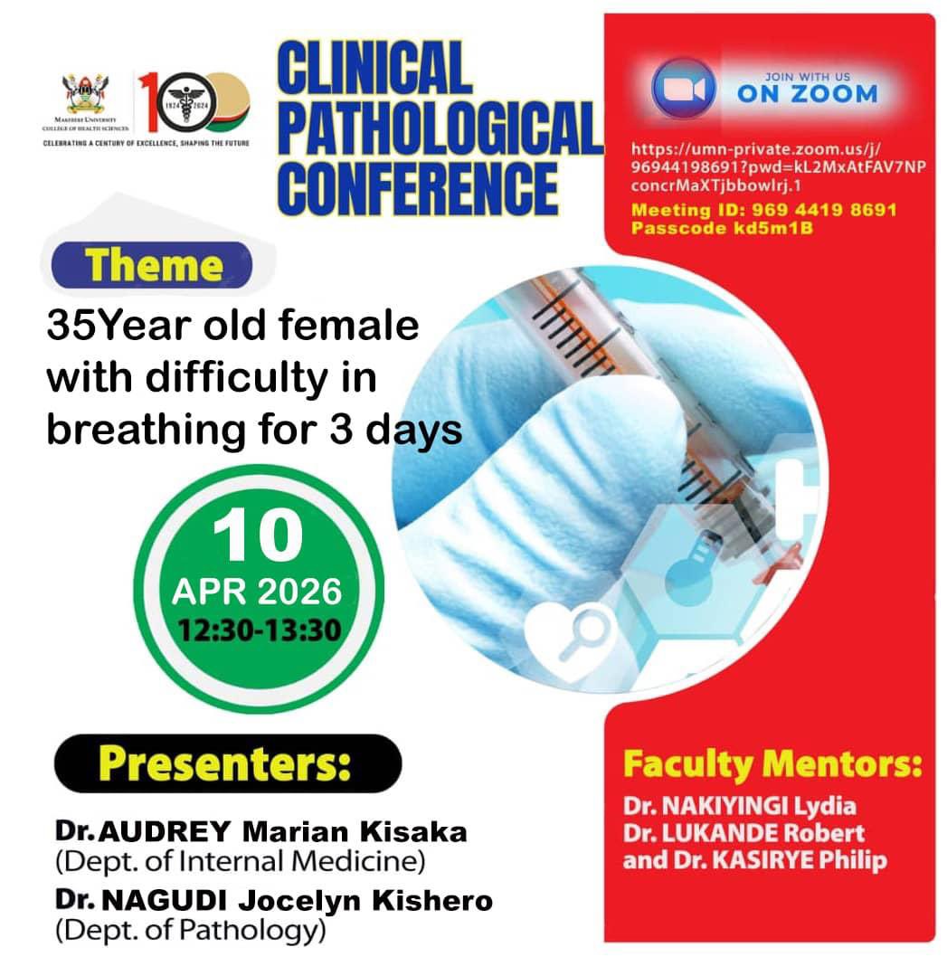 The Makerere University College of Health Sciences invites students, clinicians, and researchers to attend an upcoming Clinical Pathological Conference (CPC) session. Conference Theme A 35-year-old female presenting with difficulty in breathing for 3 days This session will provide an opportunity …