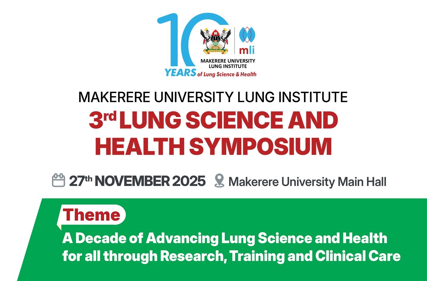 As part of its 10-year anniversary, the Makerere University Lung Institute invites researchers, clinicians, policymakers, and students to join the 3rd Lung Science and Health Symposium — a gathering dedicated to advancing lung health through evidence-based research, innovation, and collaboration.