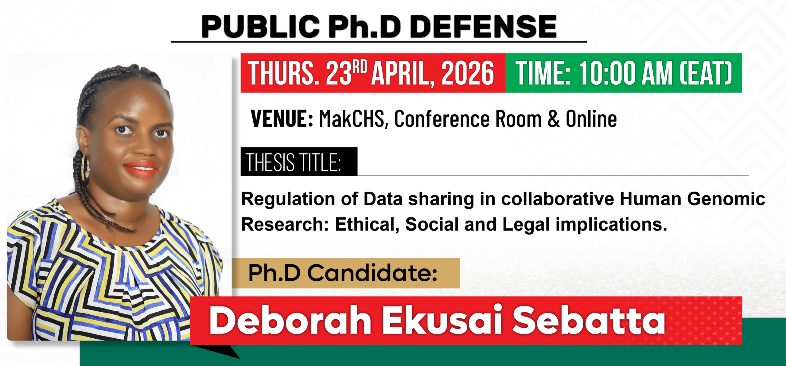 The Dean, School of Biomedical Sciences at Makerere University College of Health Sciences cordially invites staff, students, researchers, and the general public to attend the Public PhD Defense of Ms. Deborah Ekusai Sebatta.